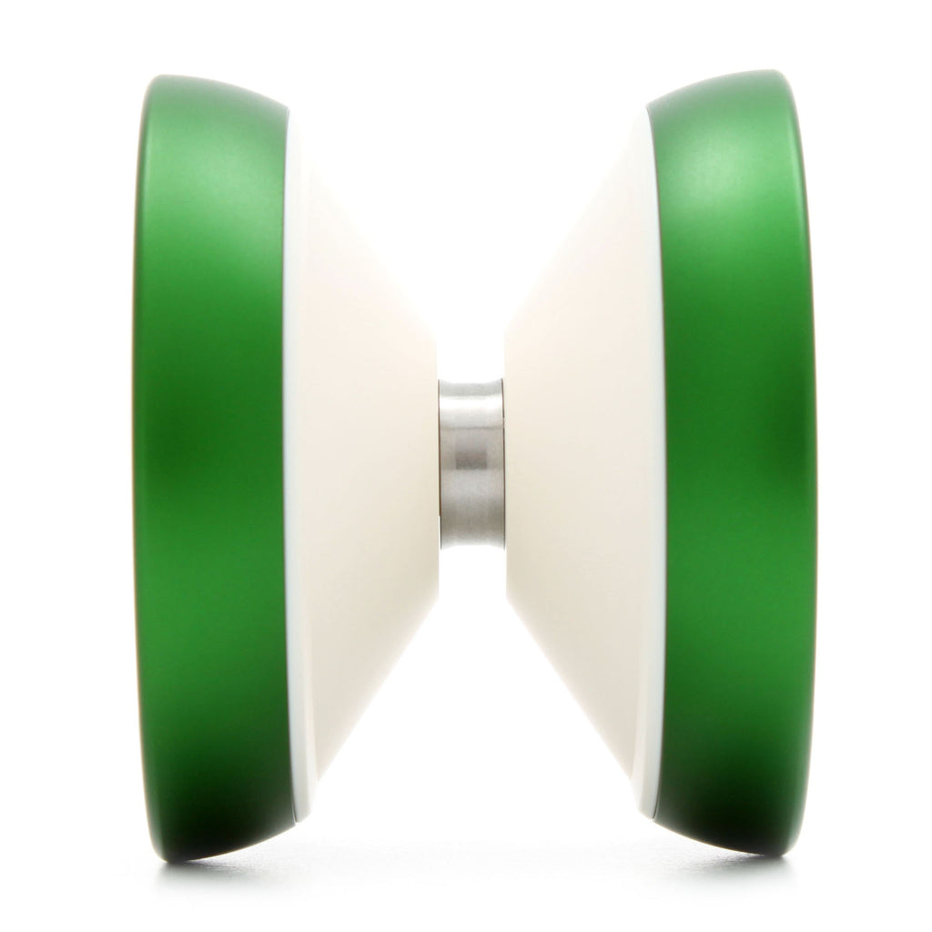 ようやく製品版のセカンドロットが発売されたので満を持して購入。軽くレビュー。 プラスチックフルヴィアの金リム版で、リムもステンレスではなくアルミ製となっており、メーカー側も意図的にジャムヨーに寄せて製作している。革新的なメーカーではあったがそれ以上に様々な逸話が残されており、良くも悪くも今なお根強い人気を誇るメーカーだ。さて性能だが、プラスチック版に比べると金リムになっての調整が入って重量が2g軽量化、直径が約1.5mm小さくなった。小さくなったが元がオーバーサイズだったのでこれでも大き目の部類に入る。プラ版は大きくも柔らかく、優しい使い心地が特徴だったのに対し、こちらはサイズダウンと金リム化による加速性がウリの機種となった。スリープの伸びは互角~微増くらい(体感)で使い心地も似ているが、使い込むと違いが分かってくる・・・かも。金リム化によって重量バランスもリム寄りになり、振っていてリムの存在感が大きくなった。またリムにブラストが施されており、触り心地はプラ版以上。ポリカボディもサラサラで、クリーム色も相まって数ある金リム機種でも非常に柔らかい印象を受ける。ただジャムヨーリスペクトらしく(?)少々問題もあり、精度はいままでのプラヨーに比べると少々劣る。これはまだかわいいもので、下手にベアリング交換等の為に分解したりするとブレが酷くなる・・・という。特にベアリング交換は自己責任で、とのこと(三居さん談)。ベアリング不調等は仕方ないが、出来る限り分解はさけたいところ。自分は一回バラして組み直したがブレは変わらなかったので多分大丈夫なやつだろう。リワインドでヨーヨーを購入して3年、買ってその場で三居さんに「開けて振ってみてほしい」と頼まれたのは初めてですよ・・・。まあいくらなんでも遊ぶのに支障が出るような程のブレはまず無いだろうからそのあたりは安心していい筈。なんだかんだあるが、基本的に良作なので、金リム、特にアルミリムを探している人には一応オススメ。自分はジャムヨーを全く知らないし振ったことも無いので当時のフィーリングは知らないが、当時を知る人ならそのフィーリングを求めて購入するのも一興。