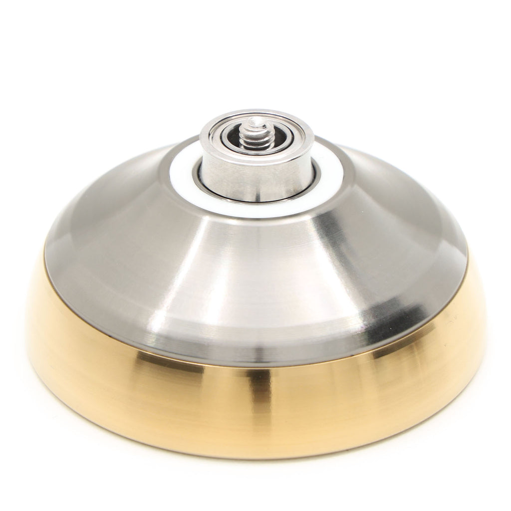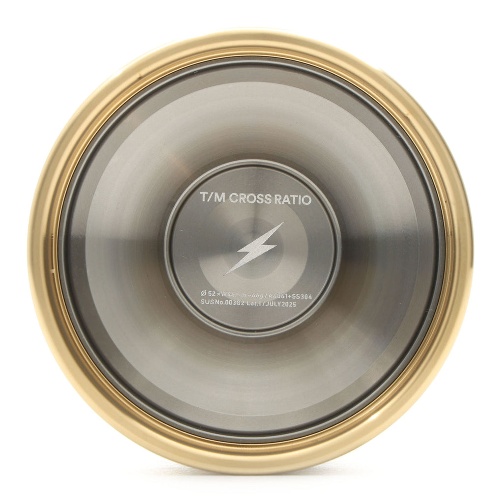 SUS YOYOMECHANICSが送り出す、小ぶりなサイズ感と幅広な形状を組み合わせたバイメタルヨーヨーです。まず目を引くのはボディ外周に搭載された極めて幅の広いステンレスリム。このリムが強力な回転力を生み出し、直径が小さいヨーヨーにありがちな「回転力の物足りなさ」を物理的に解消しています。見た目の小ささからは想像できないほど力強いスリープが、このヨーヨーの持ち味です。