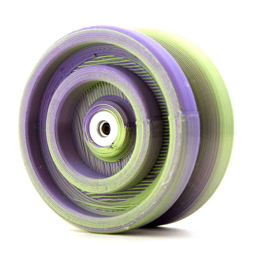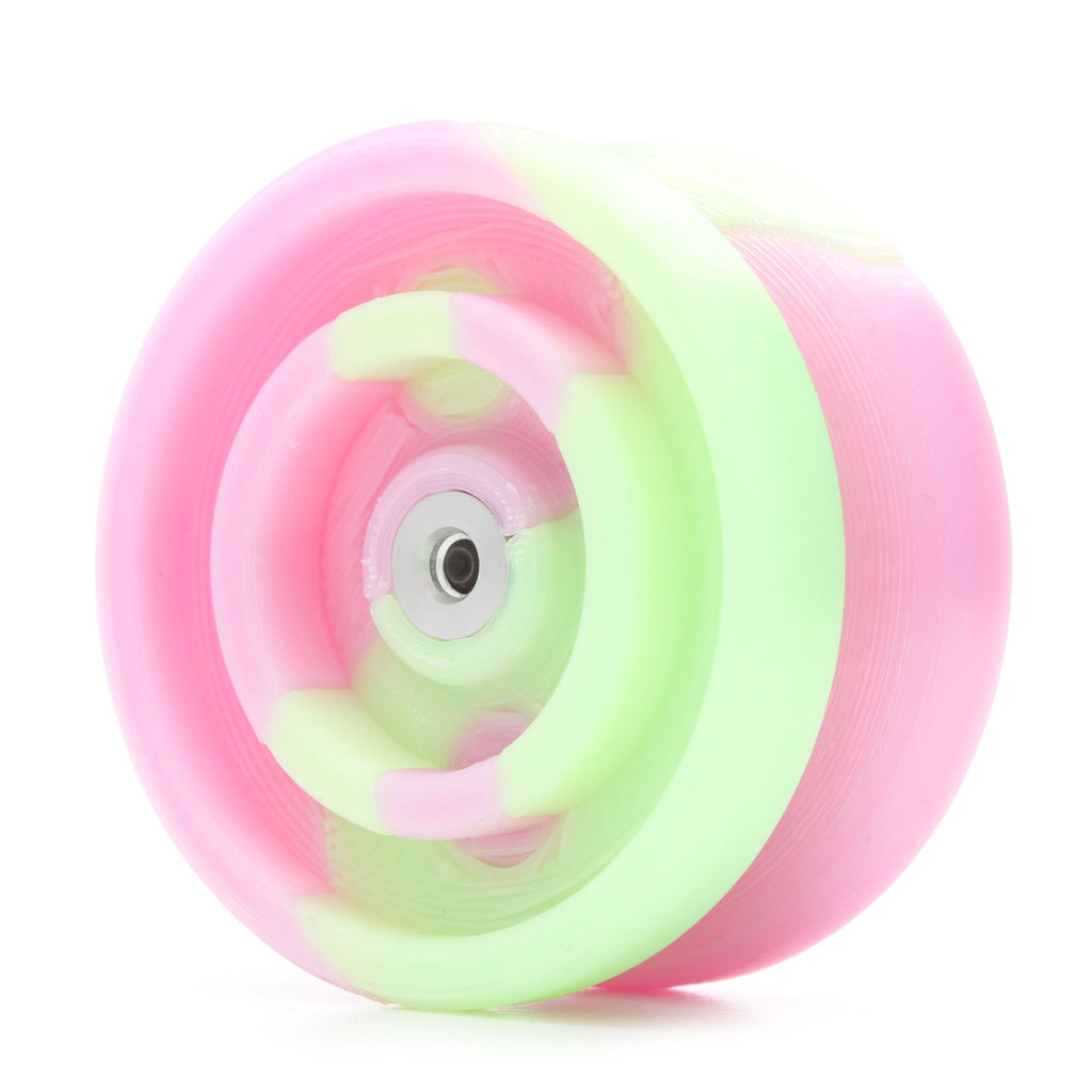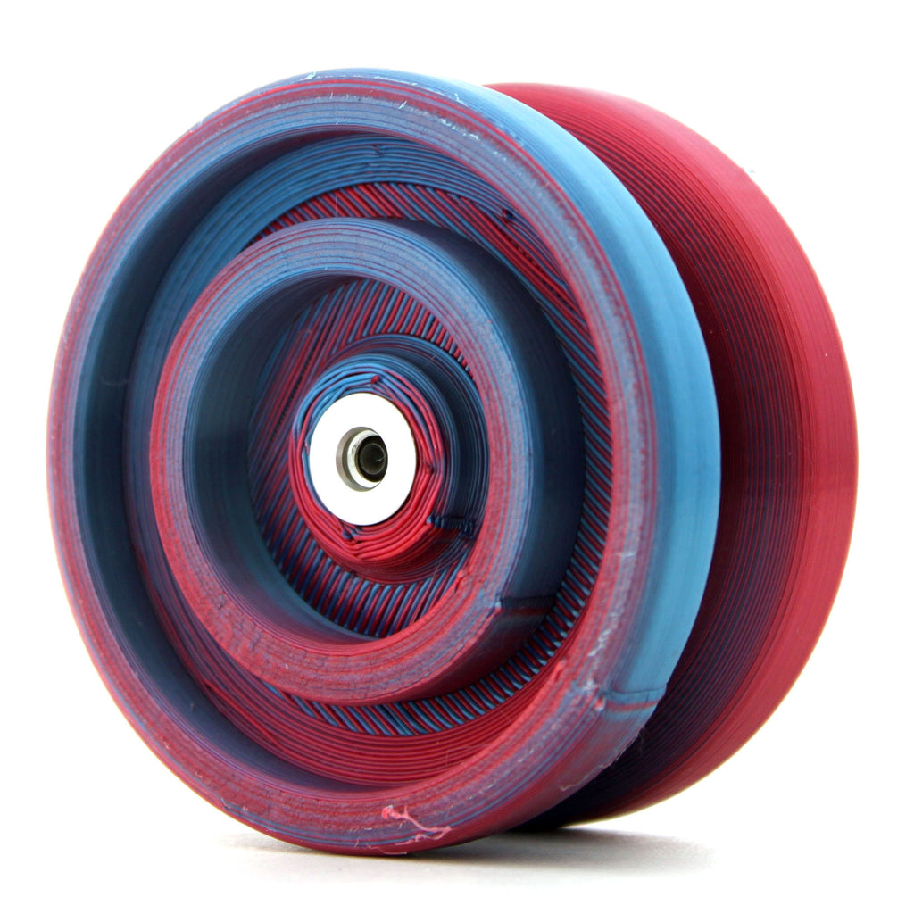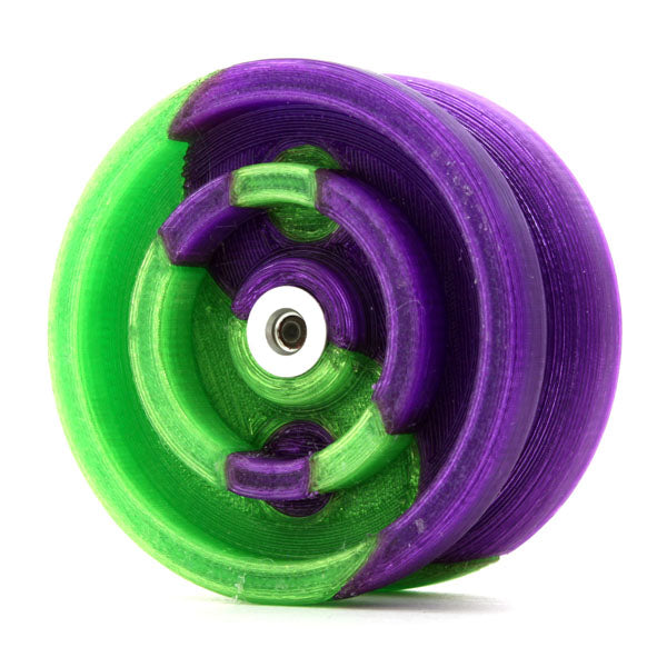 出た当初気にはなっていたものの流してしまい、今回の再入荷を機に購入。軽くレビュー。ワンドロップのディープステートのリスペクトということでダブルリム形状を除けばほぼスペックはそのまま。ただし、プラなので重量はまさかの45g。なんとステルスレイダーと同じ重さ!なので第一投からその軽さの驚きます。引き戻しの強さは良好で、ストレスなく扱えます。やはり軽い分回転力は他の引き戻しプラヨーに比べても控えめで、ぶっちゃけ回りません。それでもいいんです。なぜならこのヨーヨーの意義は「楽しむ」ことですから。まだまだ珍しい3Dプリンターヨーヨー。やはり他のプラヨーと比べるとブレがあるものの、楽しむ事を重点に置くならむしろこのブレすらある種の「懐かしさ」さえ感じてしまう。YJヨーヨーのイージートリックレトロやセイバートリックが「強化ステルスレイダー・強化ハイパーレイダー」なのに対し、こちらは「据え置きステルスレイダー」のような立ち位置です。その薄さでポケットに雑に入れて出ていき、外で息抜きや暇つぶしに振ってもいいし、サイドエフェクトを持っているなら付け替えて振り心地を比べるのも乙。何より普通のプラヨーではなく3Dプリンタープラヨーということで注目度も抜群。何か変わり物を求める人にも刺さるのではないでしょうか。値段は中々に張りますが余裕があるなら手に取ってみるのもアリ。いい意味で異彩を放つこと間違いなしです。