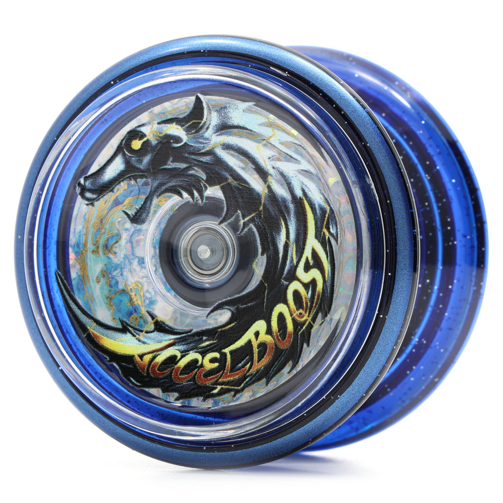 前回の罵詈雑言から頭も冷え、改めてこの機種に向き合ってみた。これはレビューではなく雑記であり、参考と言うよりは自身がやった記録として残すメモみたいなものである。「ふーん」くらいに流し読みしてくれたら幸いである。あと不確実な考察も入っているのでそのあたりも真剣に受け止めず話半分くらいに思ってくれれば。最後に、もしリワインドでアクセルブーストを買っても問題点や不満は『絶対に』バンダイの方に問い合わせるようにしてほしい。 いきなり本題に入るが、Xや練習会の人々の情報をまとめると結局の所、ブレの要因はアクセルディスクのようだ。コイツが回転中のヨーヨーと干渉して酷いブレを起こしているらしい。このディスクの精度がそこまで良くないのも影響しているっぽい。難しい理屈は分からないが、まあそういうことだそうだ。じゃあアクセルディスクを外せばいいんじゃ?と思うがそう簡単な問題ではない。ネジを外してディスクをとってもアクセル公式サイトの図面で言うホルダー部分のベアリングにほぼ完全に外せない形ではめ込まれているからである。まあ玩具なので安全性は第一だからこれは仕方がない。ならディスクとホルダー無しならどうか?これもノーだ。アクセルブーストのアクセル(軸)は競技ヨーヨーのようなタイプではなく、ルーピングヨーヨーやサクラストリーム、JTのオフストリングにあるようなナットとネジで締めるタイプであり中で固定されていない。構造的にホルダーが蓋になっており、これが無いとネジとナットがボディから外れてしまうのだ。まあ注意深く組み立てればそこは問題ないが、この状態だとブレないかわりに軽すぎてスリープが伸びない。恐らくスピンスターと同等かそれ以下くらいにしか回らない。なのでやはり理想はディスクのみ外した状態である。じゃあどうするか。バラす(破壊する)しかあるまい。自身のサベージフェンリルを犠牲に写真を撮影。一応それもアップロードしておく。アクセルディスクは中央のベアリングに外側から軸が刺さっており、裏側からプラ素材のリングで抜けないように固定されている。(写真三枚目参照。右二個はバラしたサベージフェンリル、左はバラした分補填用に買い足したアビスデーモン)なのでそのプラ部分をマイナスドライバーやニッパー、ペンチ等で破壊し、細いドライバー等で軸を叩いてベアリングから外した。かなりガッチリはまっており、ホルダーとディスクの間にドライバーを差し込んで無理矢理こじ開けるくらいしないと外れない。なのでホルダーには傷がつくが、正直今更自分にはそんなもん些事である。そしてディスクを外したら再びネジ止めして組み立て。(写真一枚目、二枚目参照)これでどうなったかと言えば・・・完璧である。恐らく個体差はあるだろうが、自身の個体はほぼブレ無し。それでいてスリープの伸びも歴代アクセルシリーズに引けを取らない。前回の罵詈雑言のレビューの中で書いた「歴代最高傑作」と言える出来となった。性能的には「スピンスター以上アロー以下」くらいの性能。競技プレイヤーからすると低いじゃねえかそれ、と突っ込まれそうだが玩具であるアクセルブーストで競技ヨーヨーに迫れるのだからむしろ賞賛すべき。やっぱり機種の素質的には素晴らしいものを持っていたが、皮肉にもそれをダメにしていたのがアクセルシステムという矛盾。Xでは一部で自分と同じように分解し、自身で加工した金属キャップをはめ込んだりする猛者もいるが、さすがにそこまで行くと一般人には無理な話。今更な話だが、分解は自己責任である。自分は使えなくなるのを覚悟の上で(3700円をドブに捨てた上で)行ったので、もし分解して使えなくなった・元に戻らなくなった等の苦情を言うのは絶対にしないように。 もう一つの要点、パッドについて。実はアクセルブースト、設計にヨーヨーリクリエーション(JNで優勝したナカムラリュウイチ選手や世界チャンプのミウラハジメ選手が所属する日本競技ヨーヨーメーカー)が関わっているとの噂がある。あくまで噂なので自分も信じている訳では無いが、ヨーヨーリクリエーションが発売している初心者向けヨーヨー「ファイブ/5IVE」という機種のレスポンスが恐らく流用・応用されているっぽい。このファイブもアクセルブーストと同じくサイズAベアリングで引き戻し仕様の為、構造的・技術的には使えたのかもしれない。実際に某所でファイブを購入し精度ガバガバのプラノギスで内径・外径を測ったが、ほぼ一致した。(写真四枚目参照)流石に厚みまでは分からないが、ファイブのパッドが使用できることが分かった。そのファイブのパッドはヨーヨーショップスピンギアにて扱っているので、もしパッドに細工して取り返しがつかなくなった人はそこで取り寄せれば何とかなるかもしれない。 今の所自分はパッドの出っ張りをデザインナイフでツラ位置に切り落とし、半バインド機種として使っ