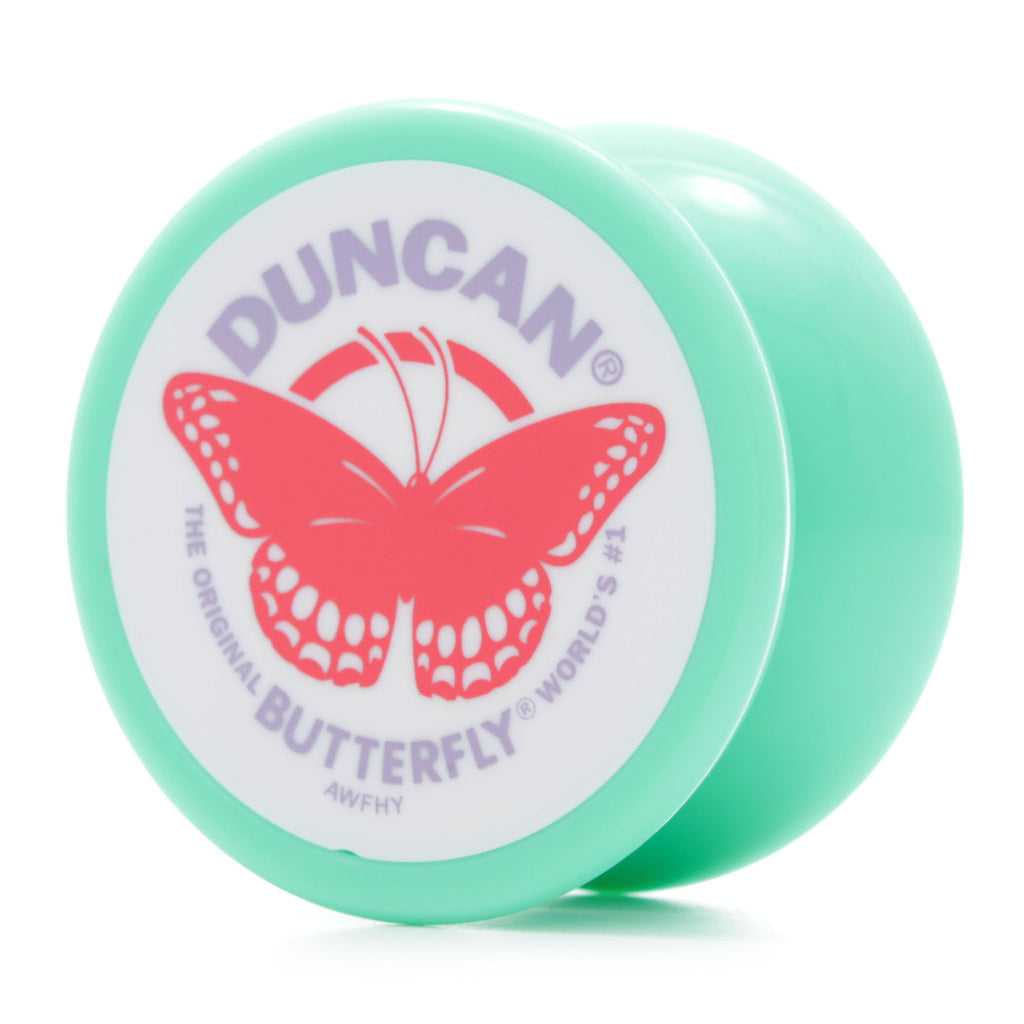 インペリアルと同じくらい長い歴史を持つヨーヨーです。ヨーヨーが蝶々のような形をしていることからバタフライと名付けられました。一般的に「つづみ型」や「V字型」と呼ばれる形状ですが、ストリングトリック向けヨーヨーの形状を表す名前の代名詞にもなっていて、「バタフライ型」と言えば誰でもわかるほど定着しています。インペリアルのボディを左右入れ替えて作られ、トラピーズ有効幅が広くなったことによりストリングトリックが誕生した元祖ともいえるモデルです。固定軸なのでスリープは長くありませんが、エレベーターやトラピーズなどは可能です。