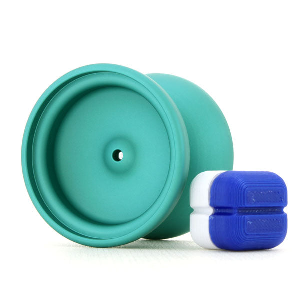 最大のポイントは、ダンカン社のフリーハンド(ラプター)キャップ互換サイズが装着可能なこと。カラーのカスタマイズを楽しめることはもちろん、キャップを装着することで、カウンターウエイト(5A)プレイ時、ウエイトがヨーヨー本体にぶつかった際の”キーン”という音を低減する効果も持っています。