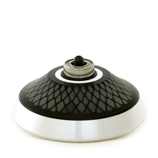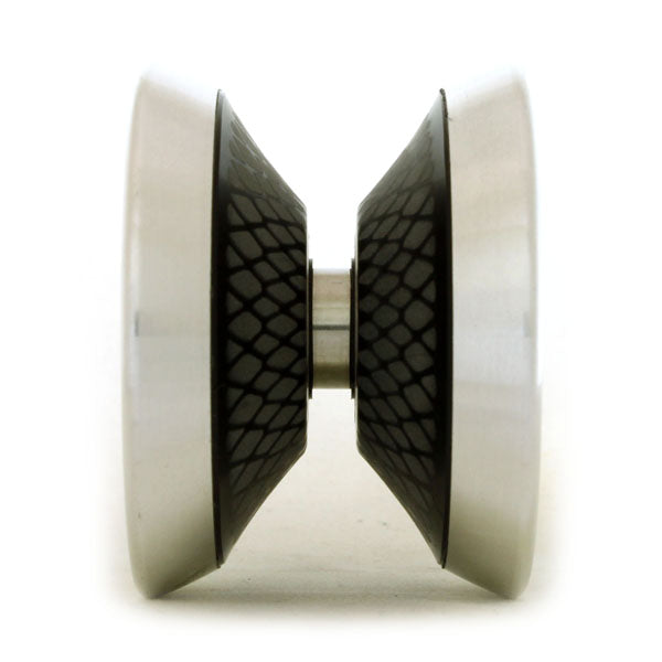 大きな特徴は「ぶ厚いアルミリム」「インバースラウンド」の2つ。アルミは比重が軽いため、回転力の強さを重視するヨーヨーには使われることは少なく、多くは比重の高い真鍮を使います。しかしあえてアルミを採用し、それをぶ厚くすることで、真鍮には生み出せない、アルミならではの軽やかなフィーリングをわずかに残しつつ、それでいて力強い回転力を生み出しています。