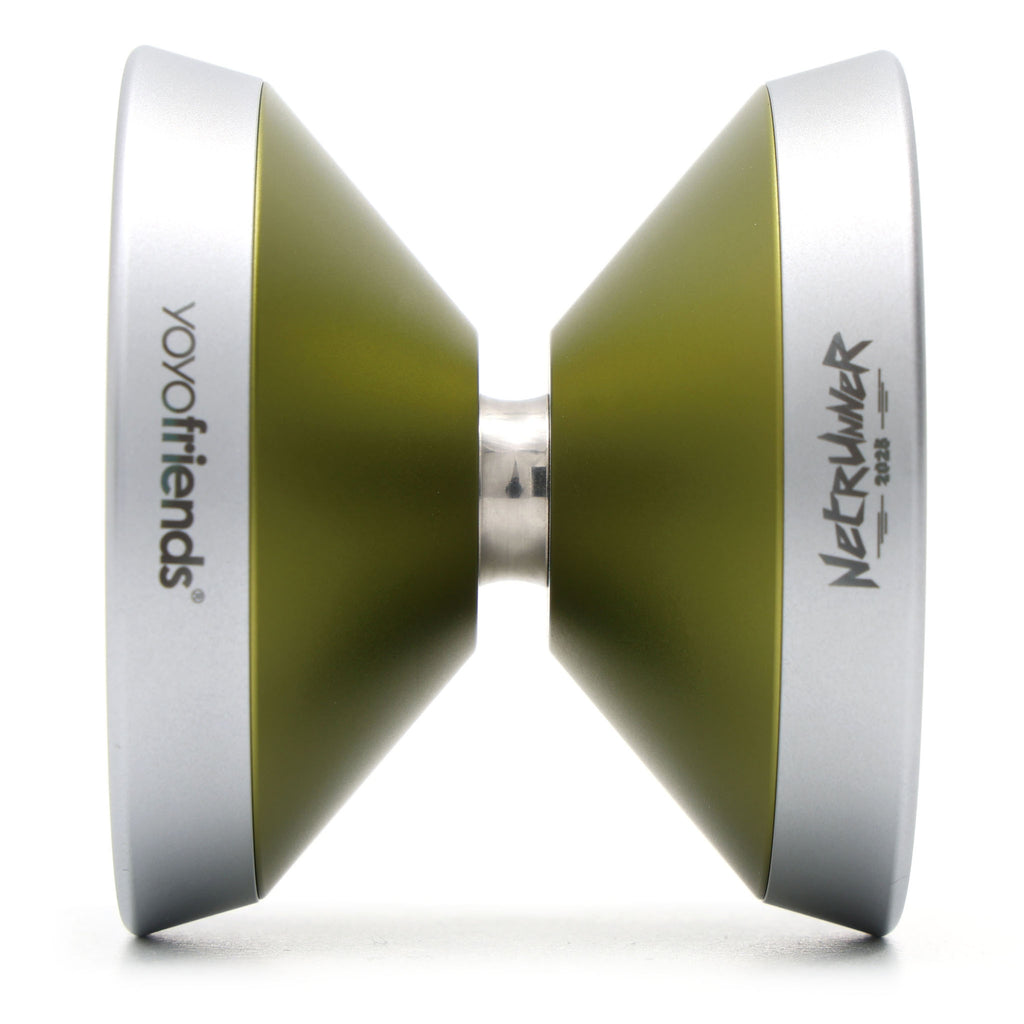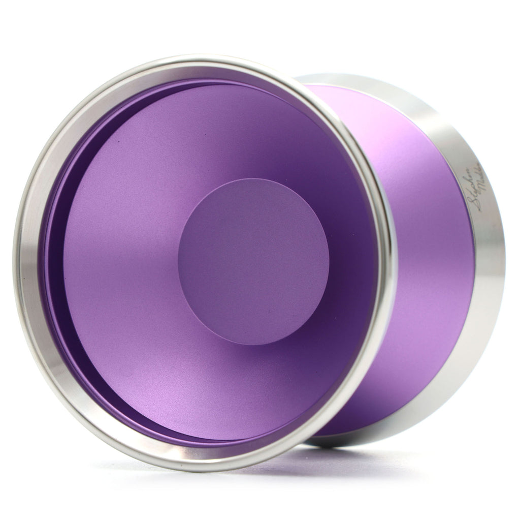 バンプすら設けないシェイプもフェイスもTheステップストレートと言う非常にシンプルかつ美しい形状ながら、7075アルミ採用かつ中空リムというヨーヨーフレンズさんには珍しい組み合わせのギャップが気になって買わせていただきました。 某サイバーパンクっぽいロゴがカッコいい。ショートカットのブラウン管テレビ時代のゲームを彷彿とさせる走査線入ったようなロゴもそうですが、ゲーム好きな私のハートに刺さります。こういう遊び心、良いですよね。 重量こそ普通だけど、大きめの直径かつ効率的にパワーを乗せられる中空リム採用ということで、もっとどっしり系かと思ってたんですが、死角に行っても見失いにくい手応えはあり、ステップストレートらしい素直な操作感と7075らしい鋭い応答性を快適に制御させてくれます。 最近は小回り重視で幅広でも直径は55mm台以下って機種も多い中、直径を大きめにとって中空ステンレスリムなだけあって、長めにコンボしてもフラフラしにくく、バインドすればぐいーんと手元に戻ってくるトルクがあるのも頼もしいです。 戦闘力そのものは高いんですが、カタログスペックから想像するよりゴリゴリの戦闘機感はなくて、気楽に振ってても楽しいフィーリング、幅広かつスリープの伸びが良くトリック習得用としても強い手助けになってくれるので、お値段はそれなりにしますがそれに見合った満足度あると思いますぞ。
