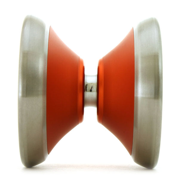 このヨーヨーの最大の特徴のチタンリム、側面の写真を見て頂けるとわかるのですが、大きく出っ張っているウイング部分が全部チタンです。アルミボディの上にチタンリムを被せる構成が多い中、オムニトロンノアは半分くらいチタンなのではというくらい面積をとっています。リワインドTVで解説された「フルメタルヨーヨー+フルチタンヨーヨー」という紹介がよくわかる豪華な仕様です。そしてチタン素材の面積が多いからか、ボディにストリングが当たった時のキーンという音がまさにフルチタンヨーヨーと同じ音で、チタン素材が豪華に使われいていることが感じられるヨーヨーです。振った感触はアルミ合金ボディの感じもあるのですが、そこにチタンリムならではの引っ張り過ぎないしっとりとした感触が乗っています。トレンドの幅が広めなヨーヨーですが安定感もあり、C3さんらしいバランスの良い完成度が高いヨーヨーになっています。2021年発売ですが、未だ一歩先を行っているようなヨーヨーと感じますね。