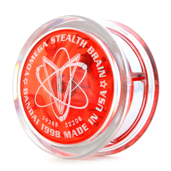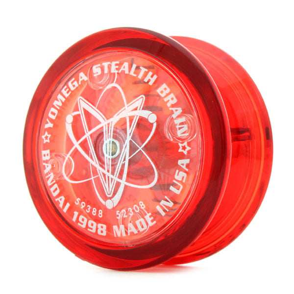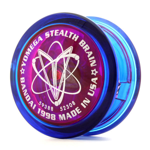 「ハイパーブレイン!」自動で戻る遠心クラッチ内蔵!「ステルスファイヤー!」鼓型ボディでストリングスプレイがやりやすい!「ステルスブレイン」はその両方を兼ね備えた! 中途半端なヨーヨーです!ええ、ルーピングプレイを期待される遠心クラッチをストリング機に搭載したらそりゃそうなります。これ一つで「アトミックファイヤー」までやれ、しかもOリング外したら改造になるのでダメ、というレギュレーションの下では拷問に近い機種でした。しかし、今は一つのヨーヨーで何でもやらなくてよいということになったので、「犬の散歩」「ブランコ」などは難なくこなせ、「ハイパーブレイン」よりわずかにローエッジなのでスリープロスもちょっとだけ低いかもね、と初心者向けと割り切ればそれなりのヨーヨーになったと思います。「ブレイン」と「セイバーウイング」を組み合わせた特有のエンブレムは、なぜか海外版の「セイバーウイングブレイン」には使われていな日本独自のものなので、それ目当てで入手するのもいいと思います。