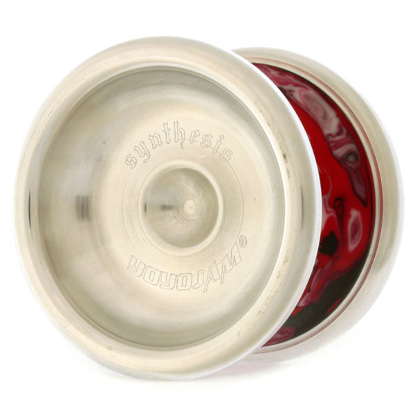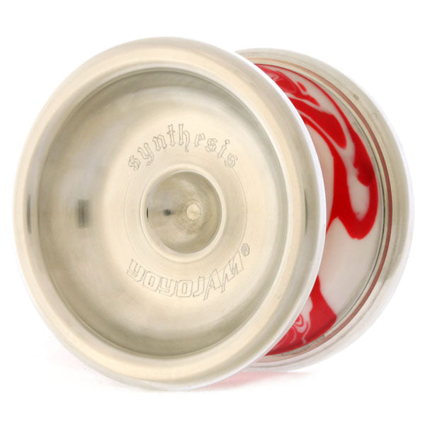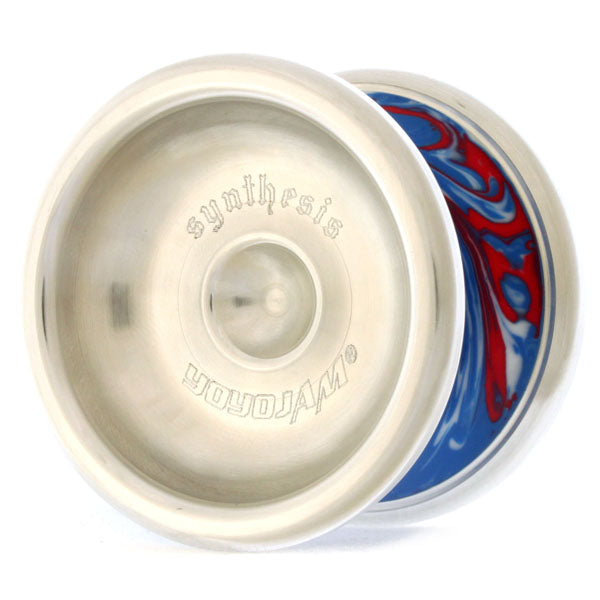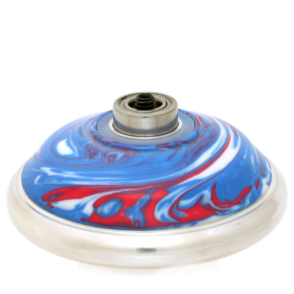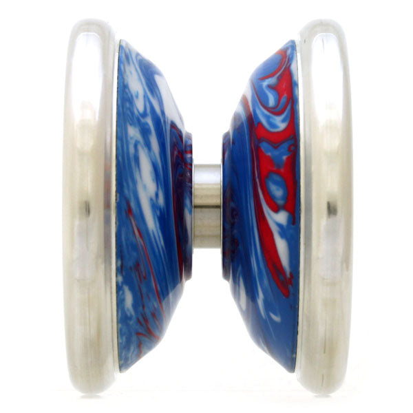 アルミがサイドフェイスを覆うようにして作られた、特殊な構造の金属リムヨーヨーです。マーブルカラーのプラスチックボディが、なんとも独特な雰囲気を醸し出しています。