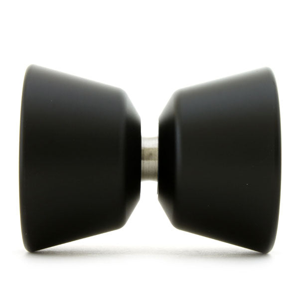 超幅広ボディの個性派ヨーヨーです。 それゆえトリックの種類によって得意不得意のコントラストがハッキリ分かれます。 高く跳ねあげるホップ系が最も得意とするところで、細かい乗せ換えを素早く行うゴチャ系は苦手なヨーヨーです。 確かに大きな幅でマウントミスを防げるのですが、中心より離れたところでストリングに乗せると、とたんに本体がブレてへろへろになってしまいます。 ベアリング付近の急角度になっているところがホットスポットで、そこより外側のまっすぐ伸びているところはセーフティネット的な意味合いが強いのです。 マウントミスをするよりはへろへろになってもなんとかプレイを続行(実質何らかのバインドキャッチ)するためのものと、割り切って捉えましょう。 そのためカタログスペック上のトラピーズ有効幅は広くとも、実質の有効幅というか、気持ち良くスムーズにプレイを続行できる有効幅はそれほど広くありません。 いかにもボヨンボヨンの練習用に良さそうですが、ブレやすく外れやすく、逆に難しくなってしまいます。 頼りになるようなならないような有効幅です。 それと直径は小さいのでチョップスティックもやりやすそうに思えますが、幅広ボディが邪魔をしてこれもやりにくいです。 やはりトリックは選ぶヨーヨーと言えます。 それでも回転力と安定感は十分確保されているので、練習のアクセントとして悪くないヨーヨーです。 おしゃれな外観なので、インテリアとしては映えるかもしれません。