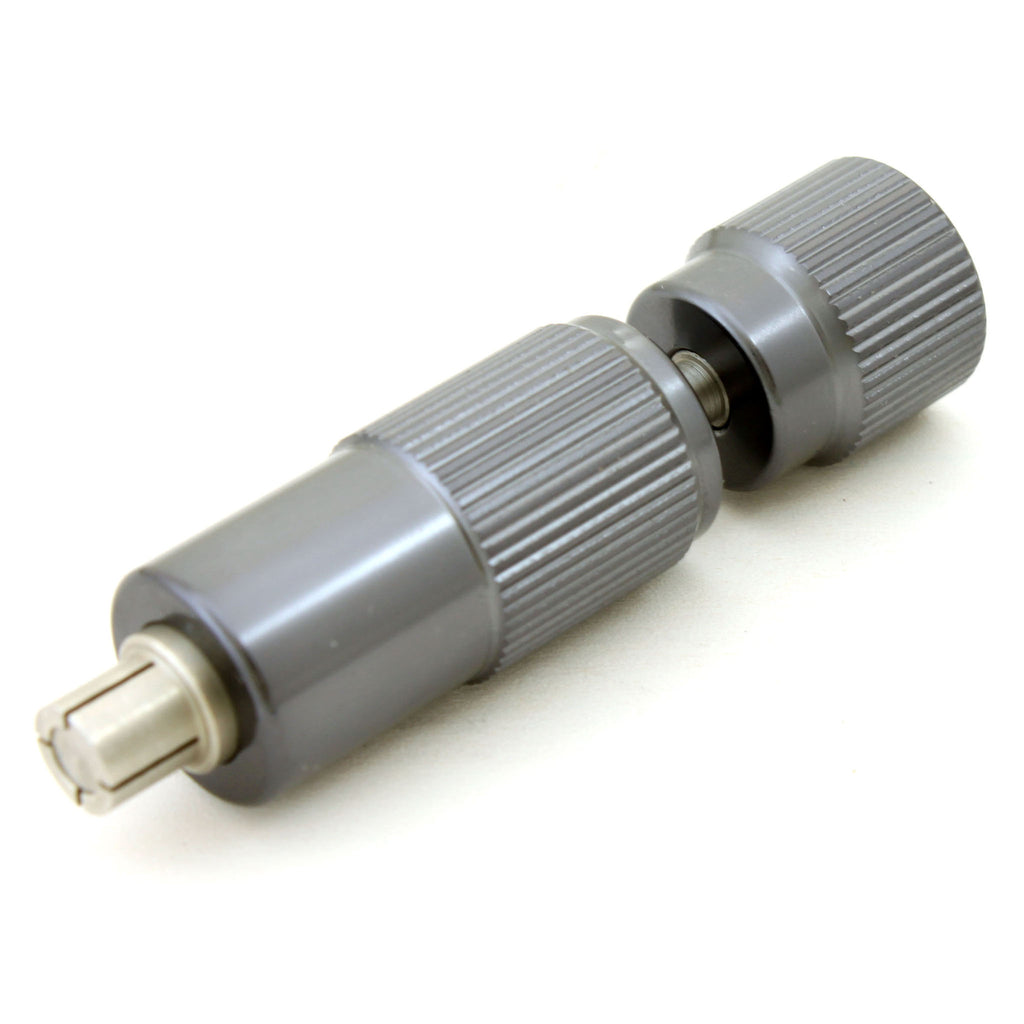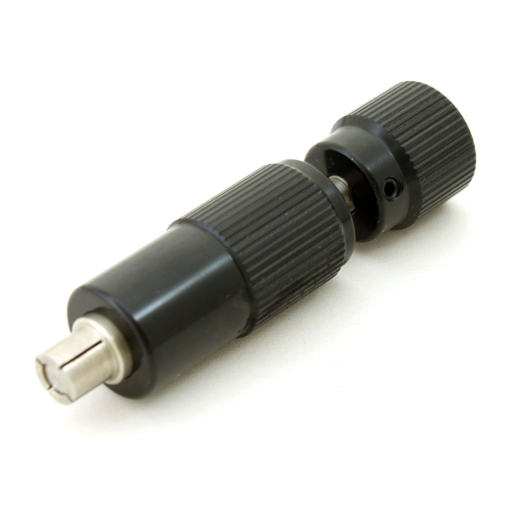 手元側の先端部分をゆるめてベアリングの内側にはめこみ、先端のネジを締めることで、ベアリングを内部からしっかりと固定します。