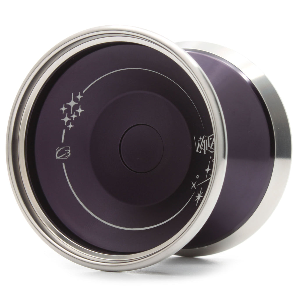 『ワルツ』は"バイメタル"と呼ばれる種類のヨーヨーで、中心に軽量な金属を、外周部に重量のある金属を配置することで、回転力とスリープ力をさらに向上させています。シンプルなシェイプで、ゆるやかなインバースラウンド(中心に凹んだ曲線)を描いており、高いバンプも相まって、ストリングがボディに触れないように工夫されています。これにより、長いスリープでトリックを最後までやりやすくする設計が施されています。